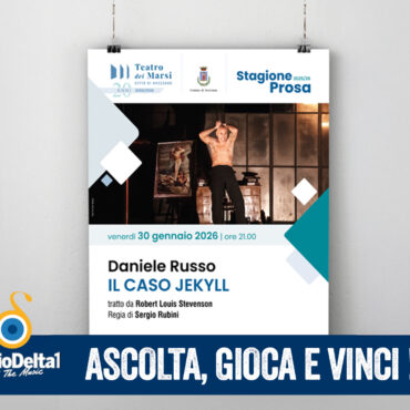 Venerdì 30 gennaio, al Teatro dei Marsi di Avezzano, va in scena“Il caso Jekyll” con Daniele Russo. 🎟️ Vuoi vincere i biglietti?📻 Ascolta Radio Delta 1🎮 Gioca con noi🏆 E prova a vincere! La grande prosa ti aspetta… e con Radio Delta 1 sei sempre in prima fila. 👉 Resta sintonizzato. Ascolta, gioca e vinci!