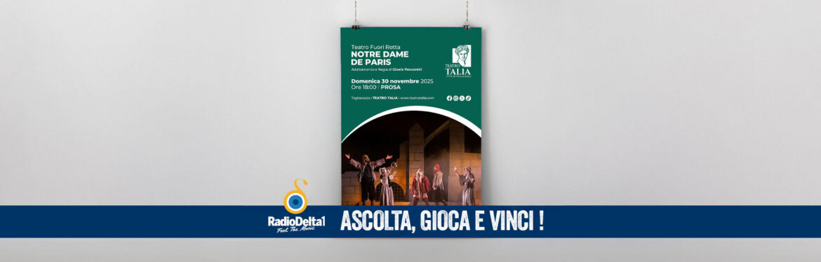 Ti portiamo nel cuore del grande teatro. In occasione dell’atteso spettacolo “Notre Dame de Paris – Teatro Fuori Rotta”, in programma domenica 30 novembre 2025 alle ore 18:00 al Teatro Talia di Tagliacozzo, puoi aggiudicarti i biglietti in palio semplicemente… ascoltandoci! Lo spettacolo, adattato e diretto da Gioele Peccenini, porta in scena una versione originale, intensa e ricca di atmosfere del capolavoro di Victor Hugo. Un appuntamento di alta qualità artistica, inserito nella stagione di prosa del […]