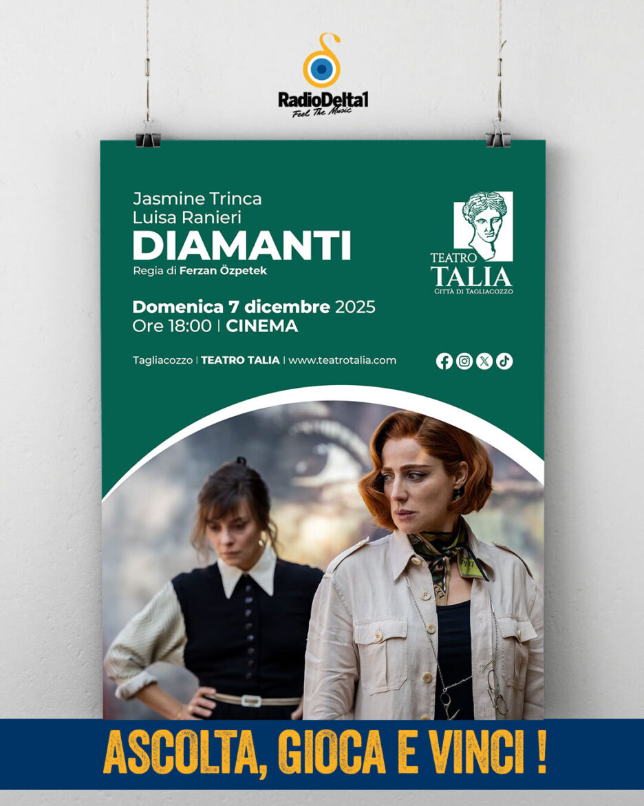 Domenica 7 dicembre 2025, alle ore 18:00, il Teatro Talia di Tagliacozzo ospita la proiezione di “Diamanti”, il nuovo e atteso film di Ferzan Özpetek, interpretato da due straordinarie protagoniste: Jasmine Trinca e Luisa Ranieri.