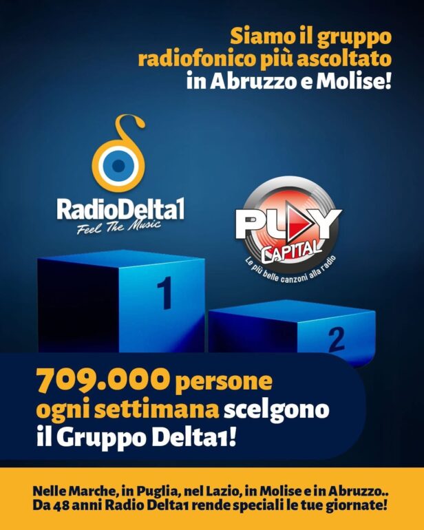 Delta1 è la radio più ascoltata in Abruzzo! 709.000 persone ogni settimana